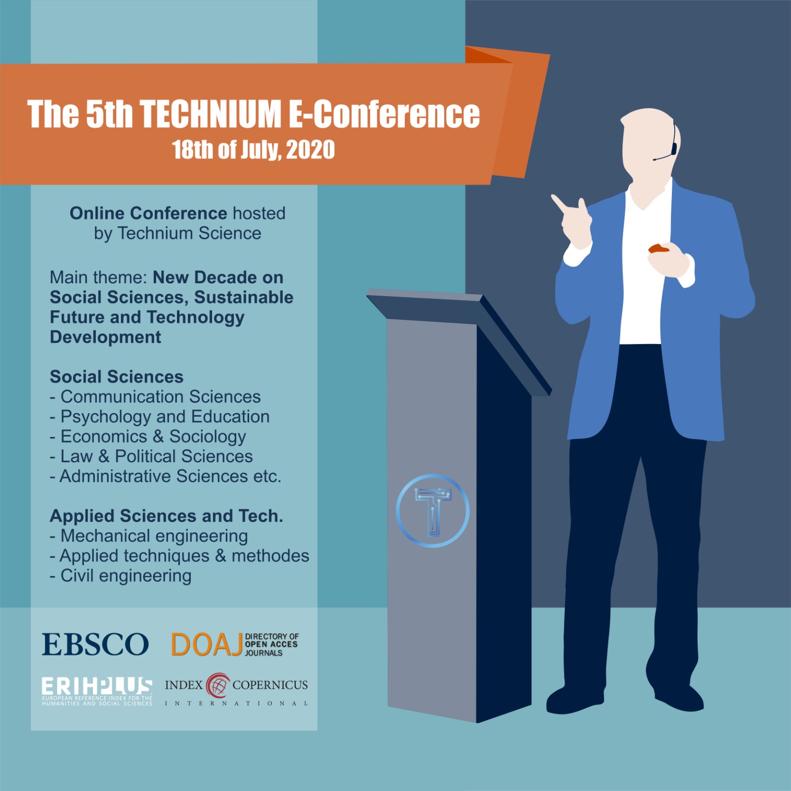It is with great delight we welcome you to the 5th TECHNIUM International Conference, general topic: New decade on Social Sciences, Sustainable Future and Technology Development (5th TECHNIUM 2020) online on July 18, 2020.