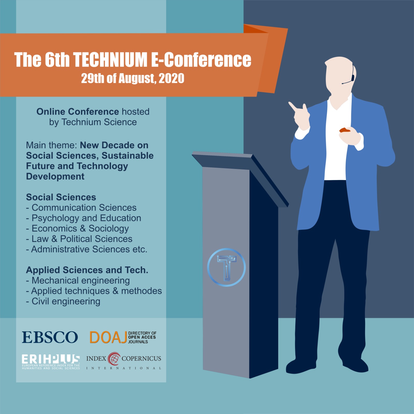 It is with great delight we welcome you to the 6th TECHNIUM International Conference, general topic: New decade on Social Sciences, Sustainable Future and Technology Development (6th TECHNIUM 2020) online on August 29-30, 2020.